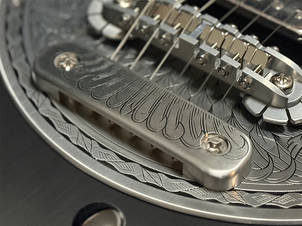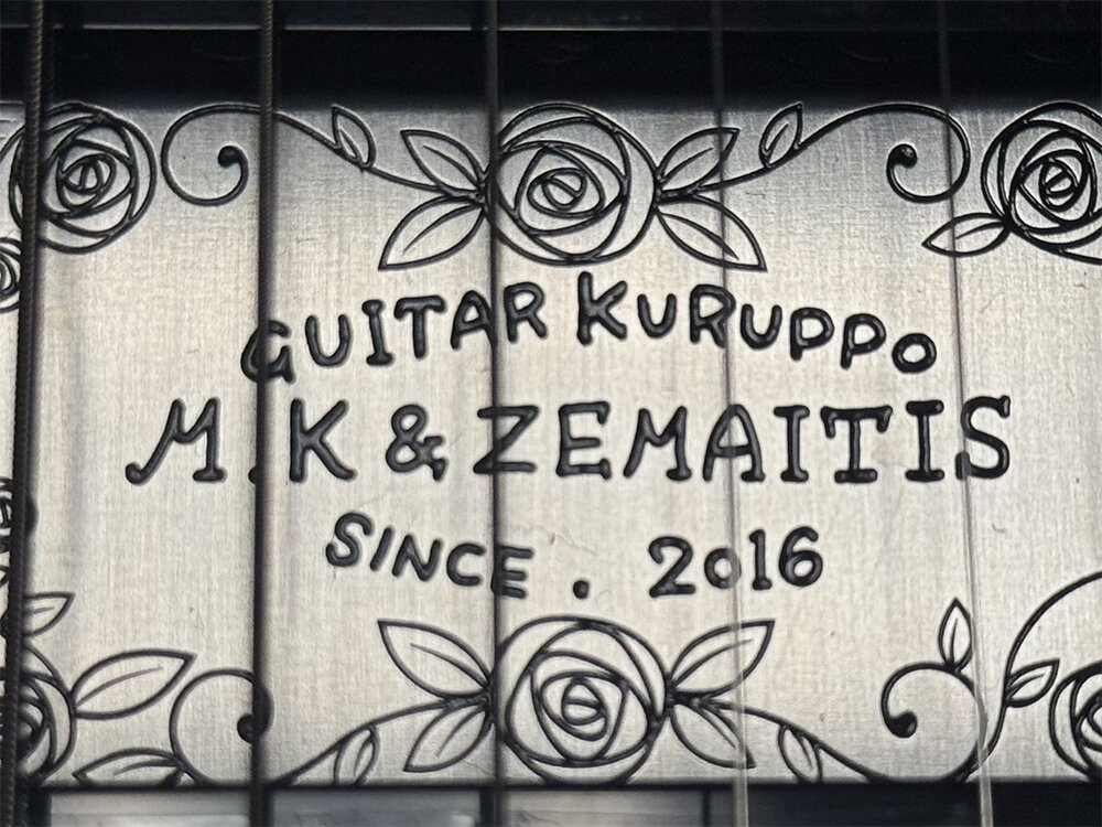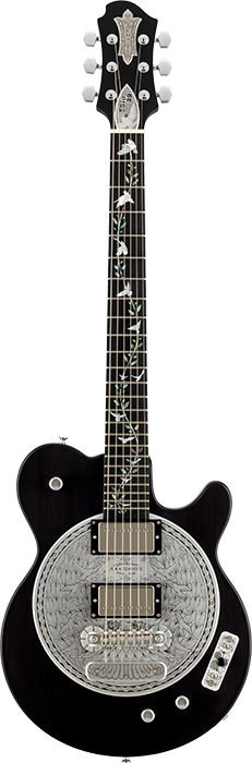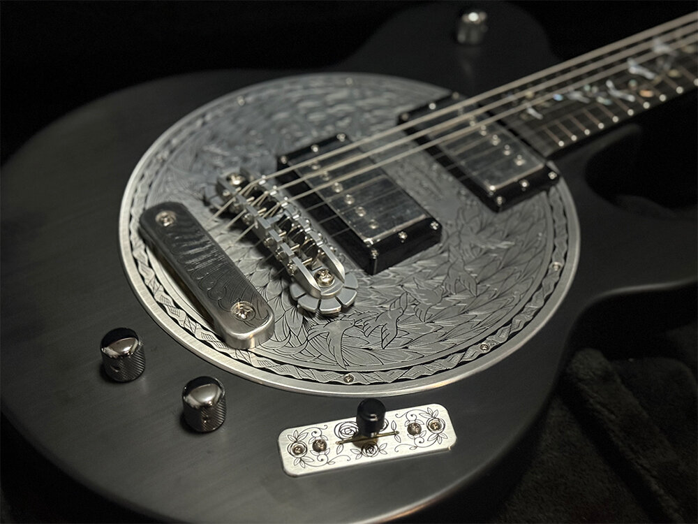 総合デザインをグラフィック・デザイナーの竹内光司氏に依頼し、ギター・シェイプ、ディスク・プレートをはじめとした金属パーツ、フィンガーボード・インレイなどのデザインを2人のアイディアを元に完成させました。