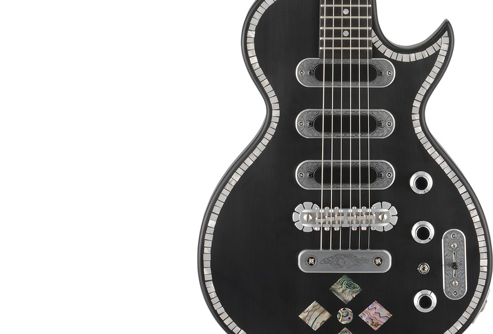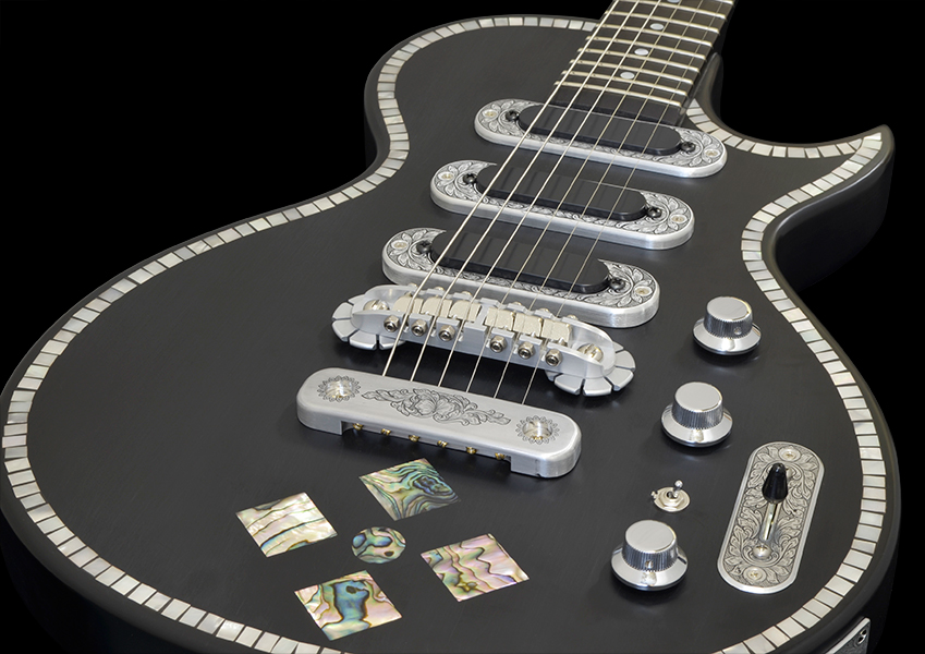 モノカット・ボディに3個のシングルコイル・ピックアップを搭載した印象的なデザインは、緩やかな高低差を持たせたアーチトップとなっており、ゼマイティスの独創性が十分に表れている。