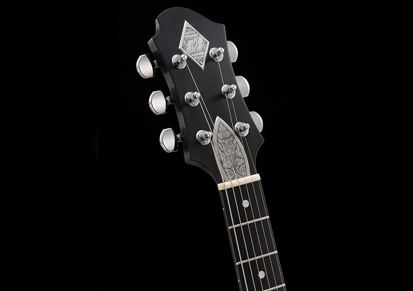 3漆黒のエボニー・フィンガーボード。ダイヤ型のヘッドプレートがゼマイティスを象徴している。