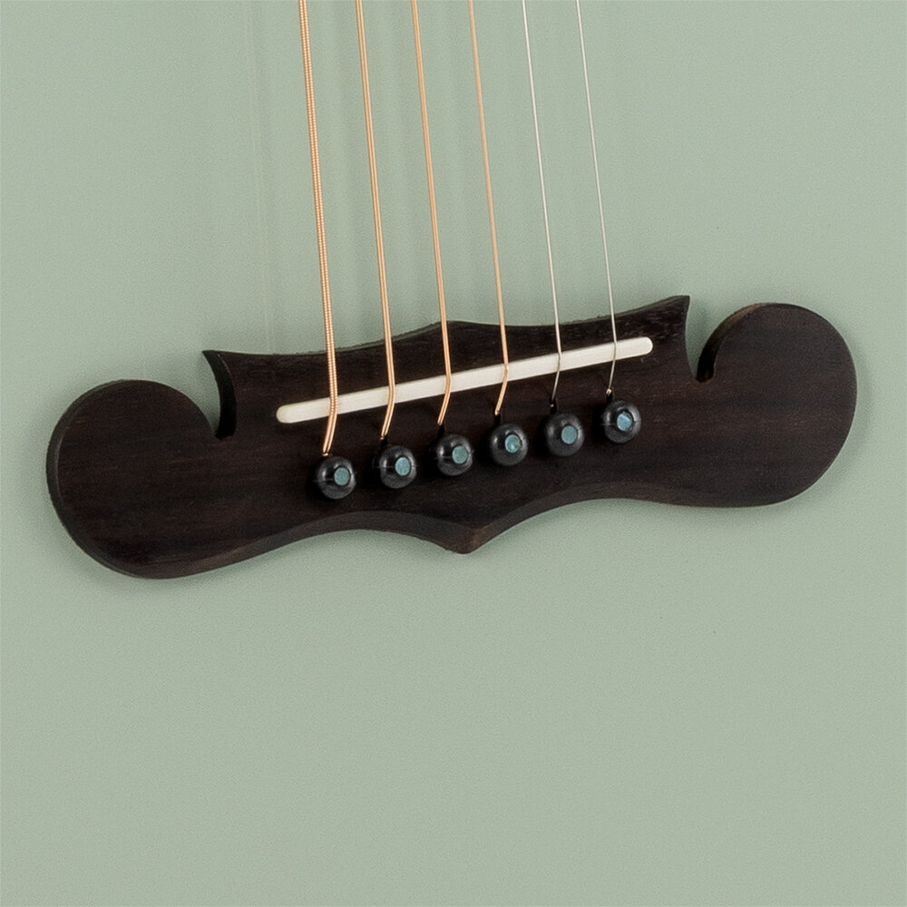 ゼマイティスの伝統的なハート型のサウンドホール、その周縁に施されたマザー・オブ・パール柄のハートをちりばめたロゼッタ、マスターシュ・ブリッジのオリジナル・デザインは、非常に魅力的です。